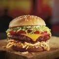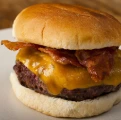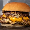 Smash patty + whiskey BBQ glaze + crispy onions + cheddar + lettuce + chipotle mayo + brioche