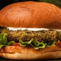 Crispy chickpea & veggie patty + arugula + tomato + red onion + chipotle mayo + brioche bun