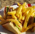 Swiss cheese + cranberry mayo + toasted ciabatta bun + seasoned fries