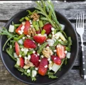 Baby arugula + pistachio + apple + shaved parm + honey lime dressing