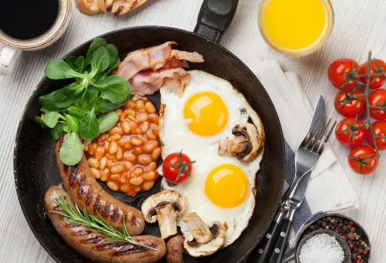 2 Any Style Eggs + 2 Slices of Bacon + 2 Sausage + Toast + Tater Tots + 2 Slices of Orange